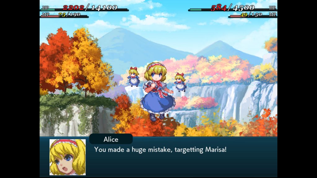 Alice: I worked really hard on Suwako’s battle lines in particular, so I think everyone should use her! The later characters all have plenty of love put into their battle line translations (not just mine) so try using characters you get later in the game!