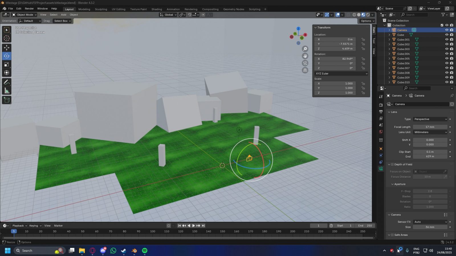 Besides, the engine, added with my inexperience with 3D object manipulation, would’ve severely impacted the fluidity and polish of the final scene, so it wouldn’t be very pleasant, in the end. I had actually modelled a more detailed 3D scene, with trees and mountains, but I unfortunately do not have photos of that anymore.
