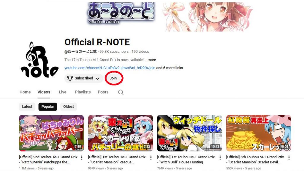 - go to the Official R-Note YouTube channel, click the “Join” button right next to the subscribe button.