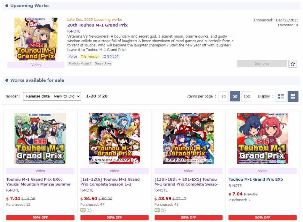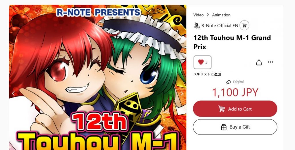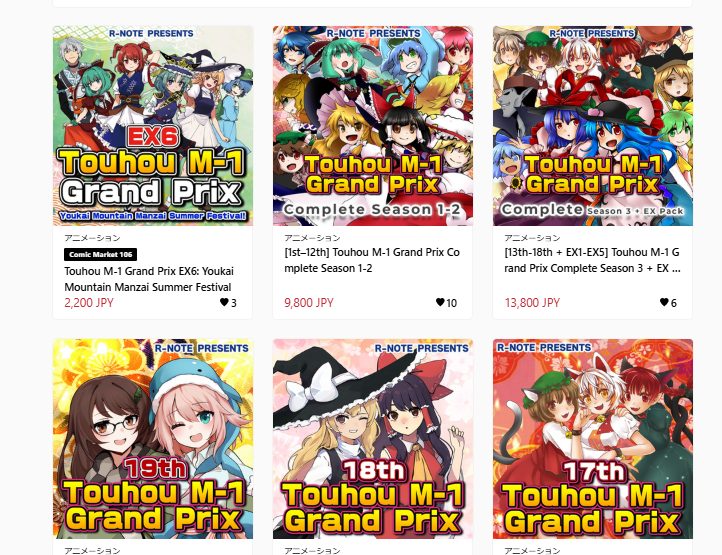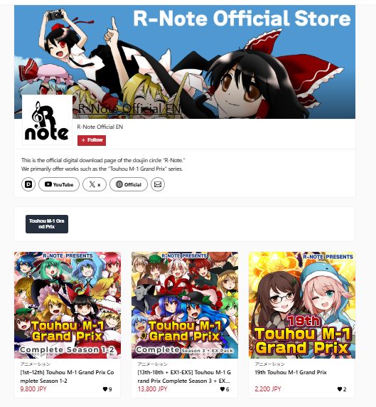 Touhou M-1 Grand Prix is available for viewing on R-Note’s official YouTube channel and available for purchase on DLsite and Booth! You can check them out by clicking the links below!