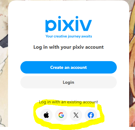 - Register for Pixiv, you can make this easier by signing up with Apple, Google, Twitter, or Facebook.