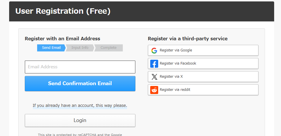 - Register for the site, you can make this easier by signing up with Google, Facebook, Twitter, or Reddit.