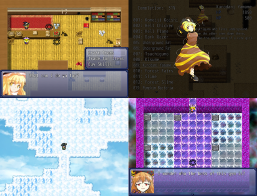 The third game I’d like to show off is a free fangame called Moyashi Monogatari, or “Bean Sprout Story” (a clear take on Doukutsu Monogatari/Cave Story, and meant to describe the lanky little Patchouli we play as). It’s a passion project made by a solo developer named J・J, and one of my favorite games to have been given the opportunity to translate. I worked directly with J・J to add dual language support to the game.