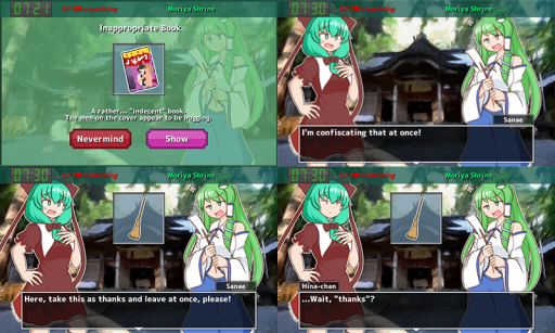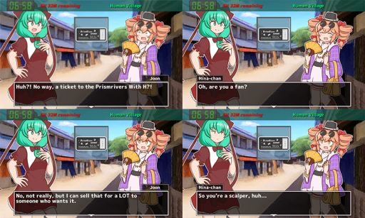 The game features six different characters to trade with: Nitori, Suika, Reimu, Sanae, Joon, and Minoriko, and over 300 different items to trade. Almost every single item has unique dialogue for every character, so pair that with the game’s time limit (you’re preparing for LUNCH, after all) and you’ve got a game you can play a bunch of times to get very different experiences.