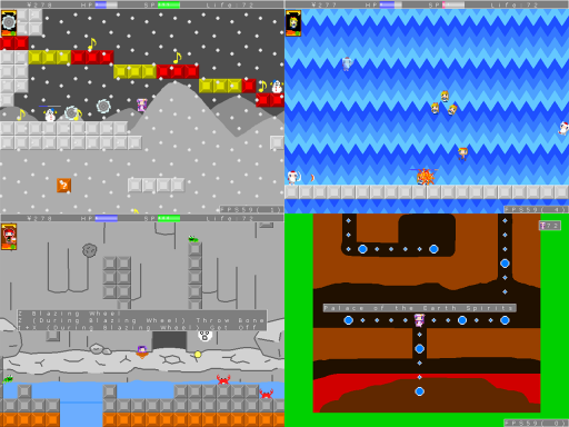 The next game (or series, actually) that I’d like to show off is Touhou ROCK MAIDEN. It’s a trilogy of challenging platformers modeled after the classic Mega Man games made by the doujin circle Capricorn, who gave me permission to create and release English patches for them.