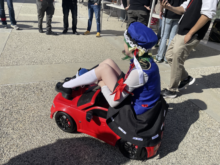 With a bright, warm sun and a spring breeze, Day 0 served as a fun start to TouhouFest before it officially began. Attendees mingled and hung around even after they had their badges pre-registered, bringing out Fumos, gift exchanges, and a remote control mini jeep to drive around in the pavilion; some even came out in full cosplay!