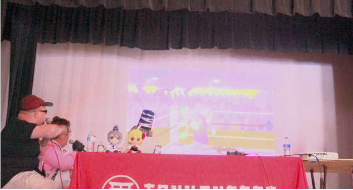 One of the panels was the Touhou Wrestling Panel, hosted by Paradarx and Asperger. This was a series of WWE videos showcasing the Touhou characters as wrestlers. Surprisingly, TAMUSIC and ZUN were also characters created for a wrestling match, which incited much amusement from TAMUSIC himself.