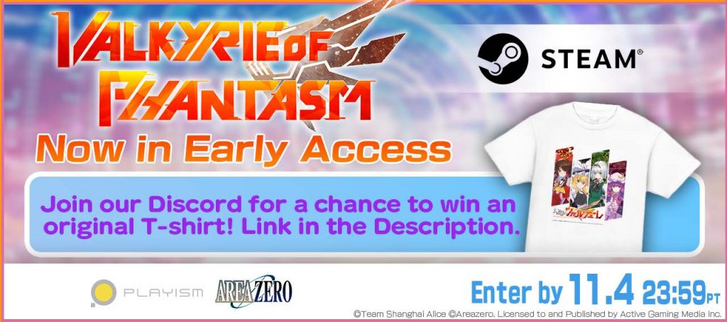 To celebrate the release of Valkyrie of Phantasm, our Discord server will be hosting a giveaway of 5 keys for winners, and 3 grand winners will get a key and an original T-shirt!