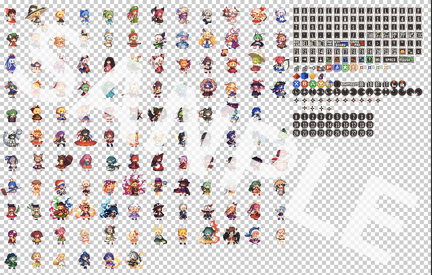 Special Spritesheet includes every touhou character from EoSD to UM, provided by Gensokyo Night Festival’s creator tea_basira.