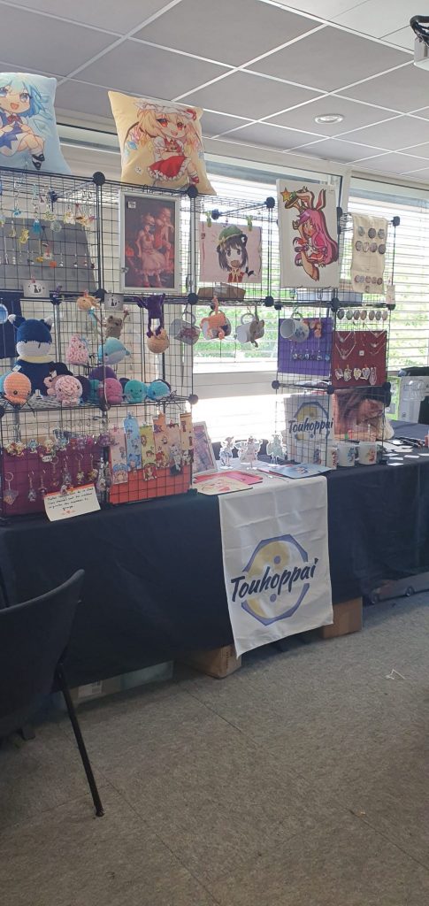 A small part of the booth is also dedicated to Touhou merchandise that we created and which is used to fund our group and provide brand new Touhou goodies (charms, illustrations, T-shirts, …)